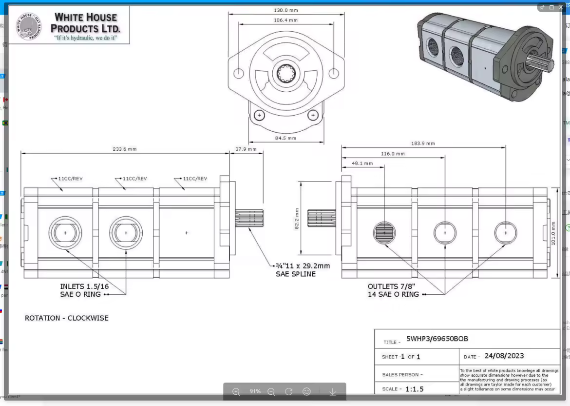Pompe de remplacement fabriquée par WHP. Arbre cannelé à 11 dents. Bride de fixation SAE A à 2 boulons. Contactez WHP si vous avez besoin d'un arbre cannelé à 9 dents.